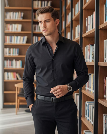 The Midnight Pin Collar Statement Shirt is designed for men who appreciate sharp tailoring with...