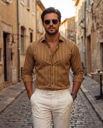The Brown Double Stripe Formal Shirt blends classic tones with contemporary design. Featuring a rich...